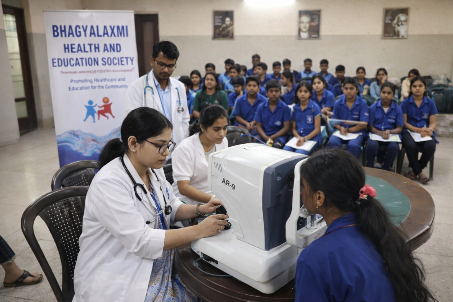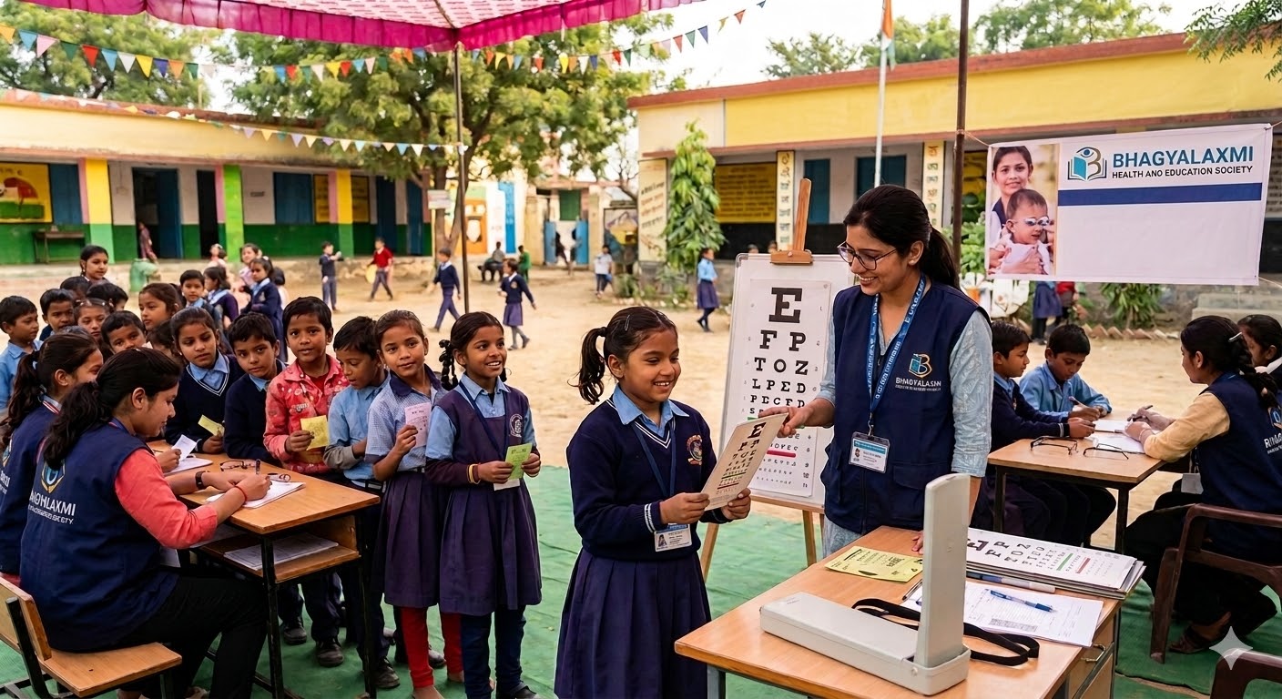 Bhagyalaxmi Society collaborates with schools in urban and remote areas to organize free eye screening camps and spread awareness about children’s eye health.